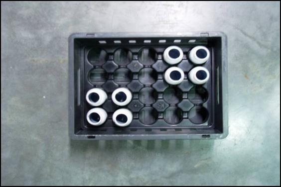 Avec cet system, les fils des bacs étaient tellement endommagés après quelques prélèvements qu’ils ne passaient plus convenablement par le robot. Les conditionnements abîmés causaient aussi pas mal de soucis et de travail manuel au personnel du laboratoire. Campina a donc recherché une solution plus robuste. L’entreprise pensait à des pourvus de plateaux à logettes. Elle a alors pris contact avec le fournisseur de bacs en plastique de l’entreprise, Engels Logistics.
