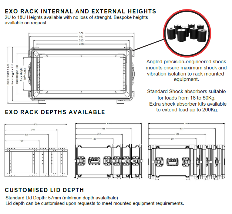- Verfügbare Rackhöhen: 2U, 4U, 6U, 8U, 14U, 16U, 18U und 20U